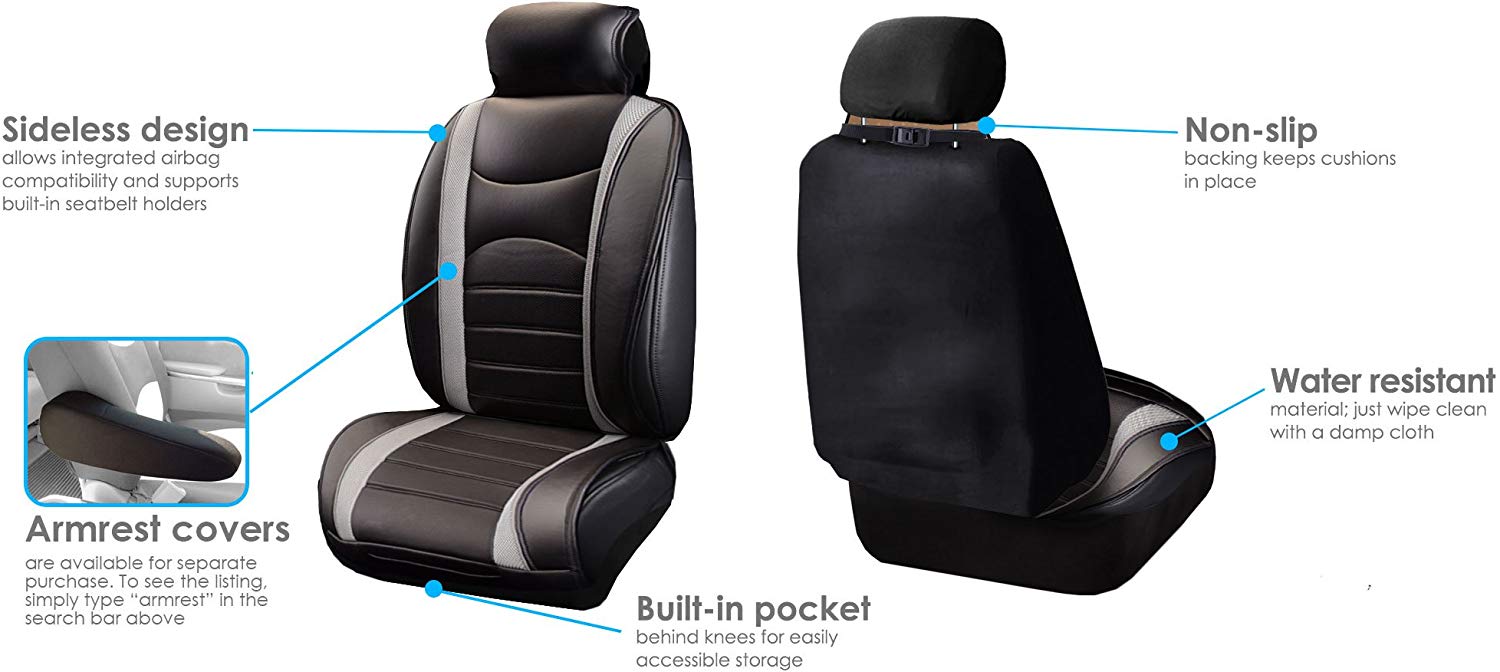 These Multifunctional Quilted Leather Seat Cushions easily slide over your seats, making installation simple! Change the look of your car or truck in minutes. The Premium Quilted Faux Leather is sure to impress! Also easily cleans as well.